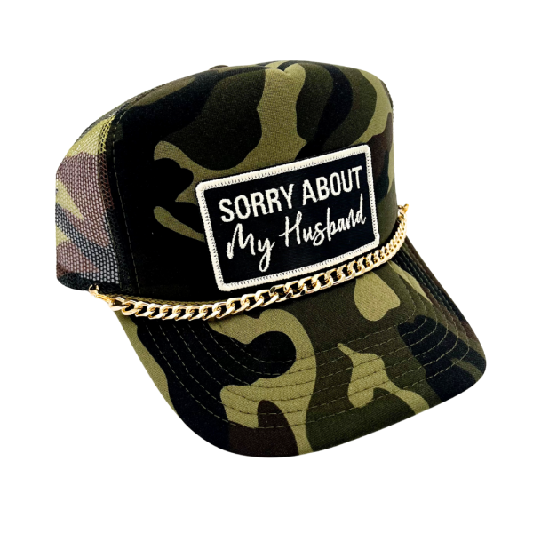 Keep the laughs rolling with our “Sorry About My Husband” trucker hat. Featuring a bold embroidered patch, this hat says what everyone’s already thinking—so you don’t have to. Perfect for casual days, family gatherings, or just running errands with a little humor. Fun, cheeky, and endlessly wearable, it’s the hat that will spark smiles (and maybe a few knowing nods).